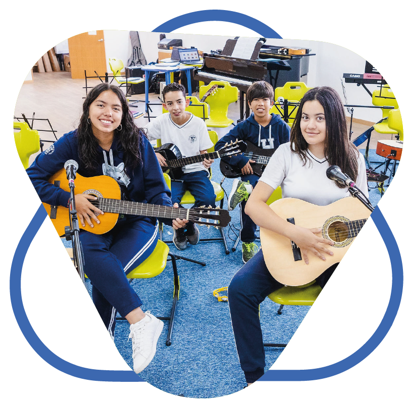 Infraestructura de vanguardia, adecuada para la formación donde nuestros estudiantes alcanzarán todo su potencial científico, artístico, musical e intelectual, en laboratorios, auditorios de música, áreas de socialización, biblioteca y salas de uso múltiple.